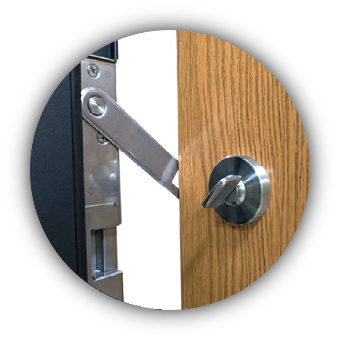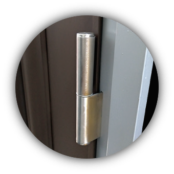 在門扇鉸鏈側加裝防撬栓,門扇關閉時防撬栓會插入至門框內。因此即使破壞鉸鏈也無法將門扇取下。