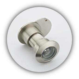 此為全板門的選配,黃銅材質的鏡體及玻璃鏡面,防水防鏽。 150度廣角鏡片,並有加裝防撬防窺後蓋。